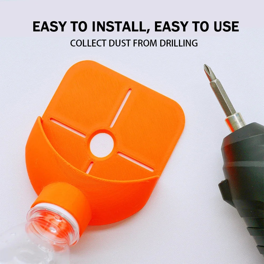 Un colector de polvo para taladro eléctrico, apto para botellas de bebidas, que ayuda a mantener la higiene en el área de trabajo durante la perforación. Es una herramienta ideal.